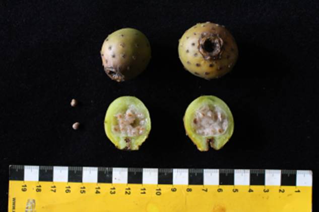 Tacinga subcylindrica - frutos, polpa e sementes |