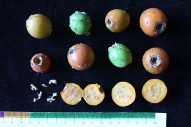 Tacinga inamoena – frutos, polpa e sementes |