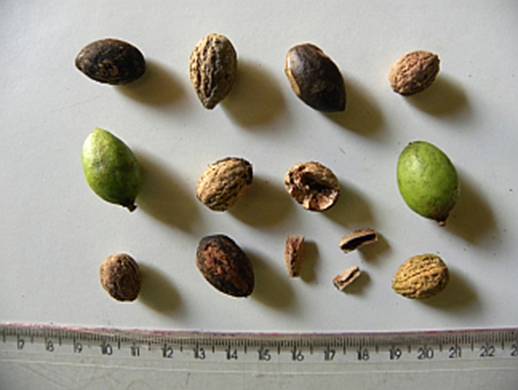 Frutos verdes e sementes